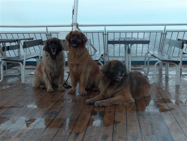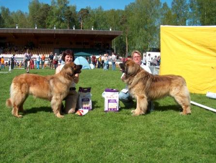 REISEBREV FRA LATVIA 19 mai var avreisedato for vår tur til Latvia. Målet var en internasjonal utstilling i Valmieira. Med på turen hadde vi Bimbo( Aldibara’s Starring Marilyn Monroe), Inex (Skjærgaardens In Time With Inex) og Paco (A Son O’A Lion). Paco, Inex og Bimbo ved det Baliske hav Reisen var planalgt med til minste detalj. Det skulle bli en lang tur fordi båten fra Kapellskjær til Paldiski bare har en hundelugar – og den var ikke ledig verken fredag eller mandag. Vi ankom til knallvær i Paldiski fredag morgen etter 10 timers båttur. Temperaturen indikerte at innholdet i kofferten med stor sannsynlighet var feil…. J Vårt første mål på turen var Riga der vi skulle være et døgn som turister. Vår første stopp ble ved det Baltiske hav – hvite strender så langt øyet kunne se. Der fikk hundene kose seg og løpe en god stund før vi kjørte videre. I Riga overnattet vi på samme hotell som Tone og Christina bodde på sist de var der. Flott hotell i lugubert strøk. Resten av fredagen og hele lørdagen brukte vi til sightseeing og shopping og som vanlig vekte hundene stor oppmerksomhet rundt i byen. Riga er for øvrig en flott by som vi trygt kan anbefale et besøk! Inger Marie med hundene foran det latviske frihetsmonumentet Lørdag ettermiddag satte vi kursen mot Valmieira der utstillingen skulle være. Etter tre timers kjøretur og innsjekking på hotellet fant vi en av de få restaurantene i byen hvor vi fikk oss et godt måltid. Den kvelden var det Grand Prix finale. Inger Marie’s ørepropper klarte dessverre ikke helt å utestenge verken musikken eller den latviske kommentatorens ivrige røst. Christina sov seg gjennom deler av stemmegivningen, men til slutt fikk hun da i hvertfall med seg hvem som vant J Søndag morgen bar det i vei til utstillingsområdet. Vi hadde på turen fremdeles ikke sett mange skyer. Denne dagen var det om mulig enda varmere enn de foregående. Heldigvis fant vi oss en plass i skyggen – som snart var beleiret av en svær dobermankoloni! Blandt dem var det noen utgaver av arten som ikke hadde det minste sjarmerende oppførsel – verken hundene eller eierene. Paco var først inn i ringen og ble beste hannhund. Bimbo ble så beste tispe og Inex ble nummer tre. I en ren norsk finale trakk Bimbo denne gang det lengste strået og ble Bir. Begge to ble Latviske championer. Paco fikk i tillegg sitt Internasjonale championat! Bimbo og Paco – Bir og Bim Den latviske kennelklubben har innført en regel som sier at du mister oppnådd premiering hvis du ikke møter i gruppefinalen. Så da var det bare å smøre seg med tålmodighet og finne seg en krakk i skyggen. Bimbo overlevde første uttak men ble takket ut av den store ringen før de fem siste skulle plasseres. Tallin var vårt neste mål! På kartet var det flere alternative veier…. Vi valgte den som så bredest og best ut – ikke noen av de små gule men den store røde J Det virket som et lurt valg de første milene på ok asfaltvei…. Men plutselig befant vi oss på grusvei! Hvis de noen gang arrangerte rally må det være på den veien J Vi ble sittende å lure på hvordan standaren hadde vært hvis vi hadde valgt en av de mindre veiene…. Vår ferd igjennom støvskyen ble rene safarien etterhvert som storker, rever og rådyr åpenbarte seg i skogen! Vel fremme i Tallin på kvelden hadde vi avtalt å treffe en av Estlands ikke mange leonberger eiere. Hun hadde fikset en hotelleilighet til oss midt i sentrum av byen. Klokken ble etterhvert så mye at den eneste muligheten til å få seg litt mat var Mc Donald’s. Mandagen hadde vi til rådiget som turister igjen. Vi gikk rundt i den gamle bydelen – fremdeles i nydelig og varmt vær. Christina og hundene i Tallinn Etter et par timers vandring var det såpass varmt at vi innså at hundene ville ha det vel så bra og svalt i leiligheten. Mens de sov og slappet av spiste vi lunsj på torget i Gamlebyen før vi returnerte til hotellet. På kvelden var vi invitert hjem til Merit og hennes mann på middag. Der fikk vi servert grillmat og tilbragte noen hyggelige timer. Hundene fikk leke med deres 6 måneder gamle leonberger valp og koste seg på deres store inngjerdede tomt. Ved midnattstider var vi tilbake på hotellet der det var om å gjøre å få pakket og lukket kofferten. Etter 5 timers søvn og et par ekstrarunder i Tallin grunnet sløv kartleser var det klart for båtturen hjem. Vi hadde 17 timers reise foran oss med båt og bil med fornøyde hunder som igjen har vært absolutt eksemplariske på tur. Snillere hunder kan man ikke ha som reisefølge! Målet med reisen var nådd – vi fikk full uttelling på utstillingen og har hatt en kjempefin tur som garantert inspirerer til flere turer i fremtiden! Inex, Bimbo og Paco på båten hjem |